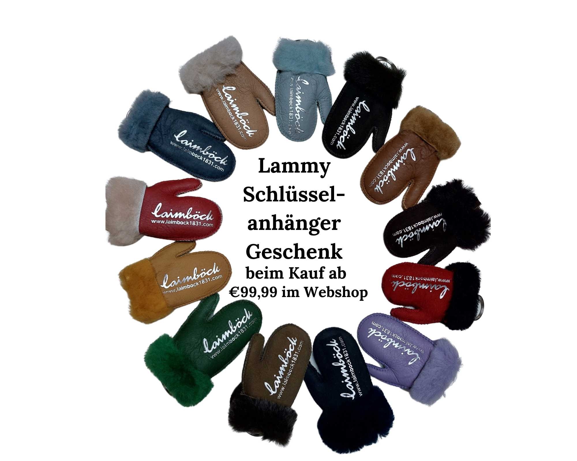 Handgefertigter Laimböck Schlüsselanhänger aus echtem Lammfell, mit stabilem Metall-Schlüsselring, ideal zur sicheren Aufbewahrung der Schlüssel. Kostenlos bei Bestellungen ab € 99,99 im Laimböck Webshop. Maße: ca. 9 cm (mit gefaltetem Rand).